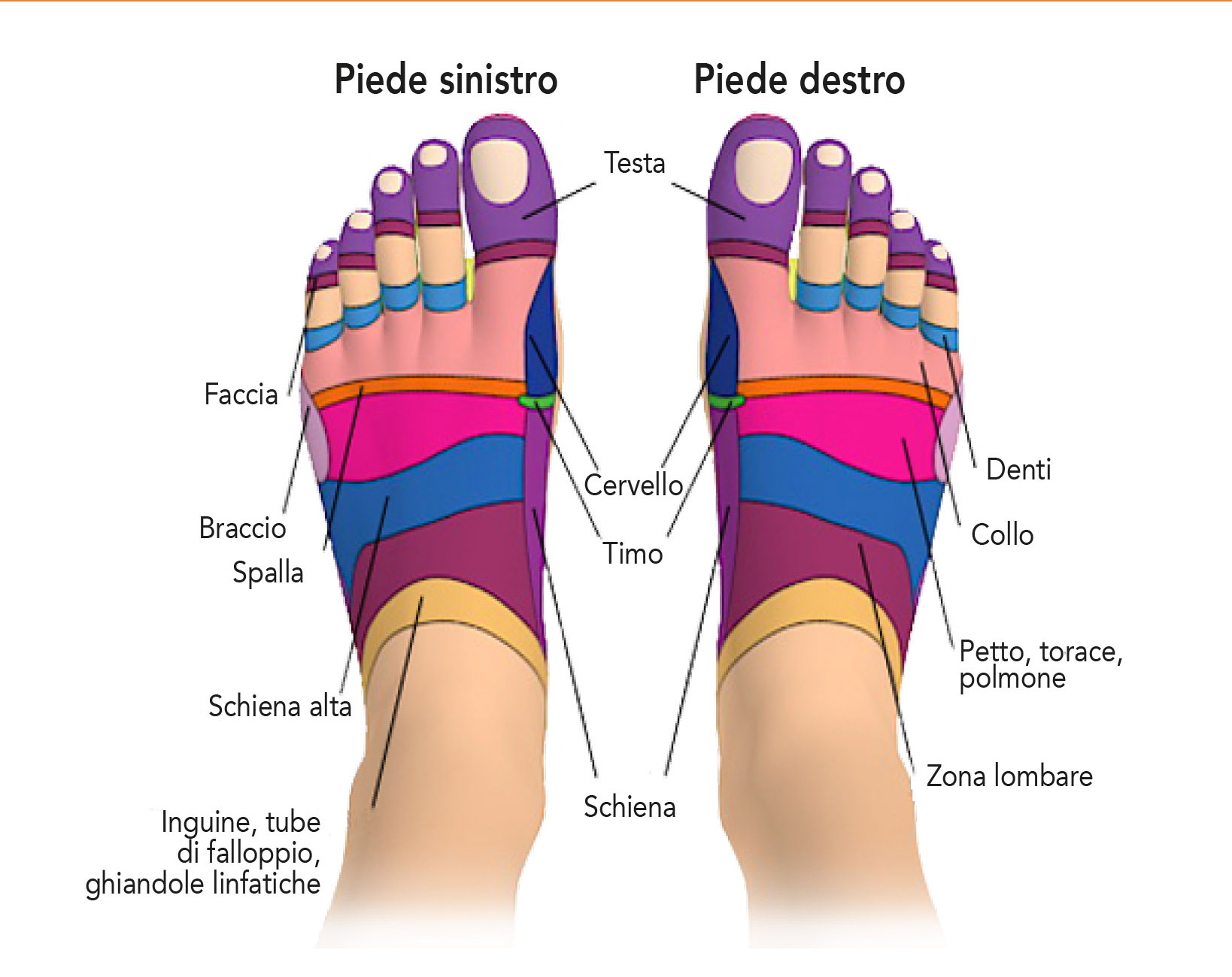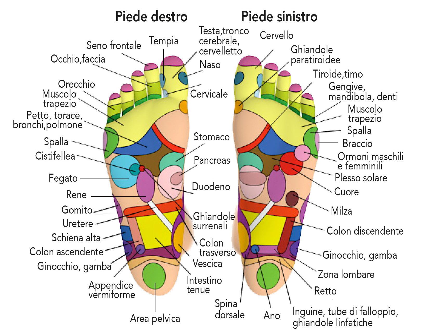 Vedi mappa di riflessologia plantare qui sotto.