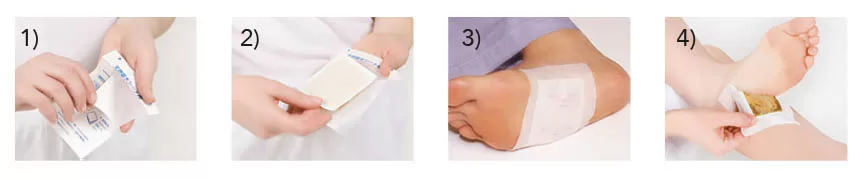 I cerotti si applicano durante la notte prima di coricarsi sui piedi in base alla riflessologia plantare per attivare le zone di riflesso.